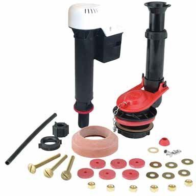 Korky Universal Toilet Repair Kit, Contains All Parts Required For A Complete and Universal Toilet Repair, Kit Includes: Fill Valve, Flush Valve, Korky Plus Red Flapper, Tank To Bowl Gasket, and Installation Hardware, Made In USA, Clamshell Package.